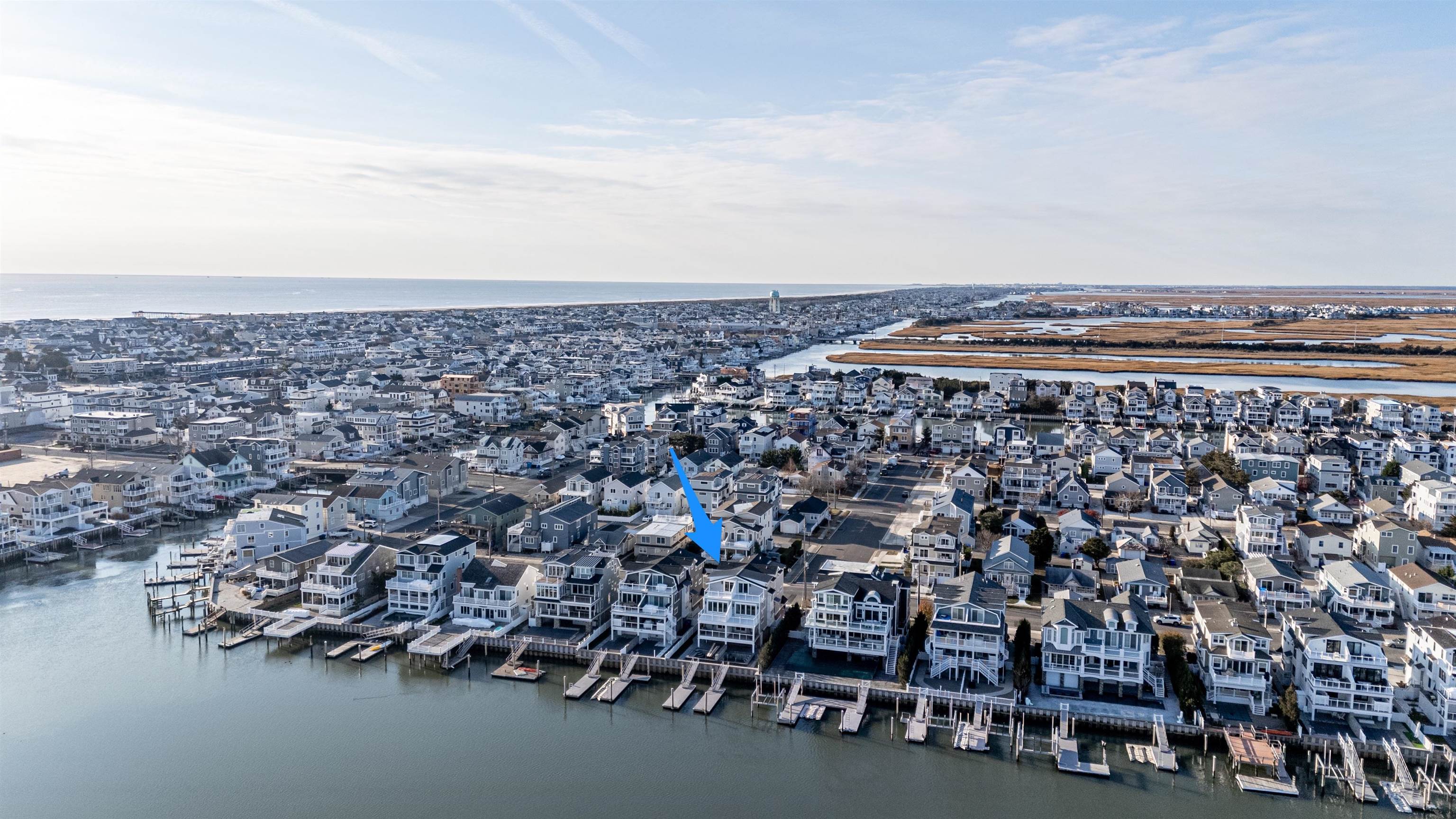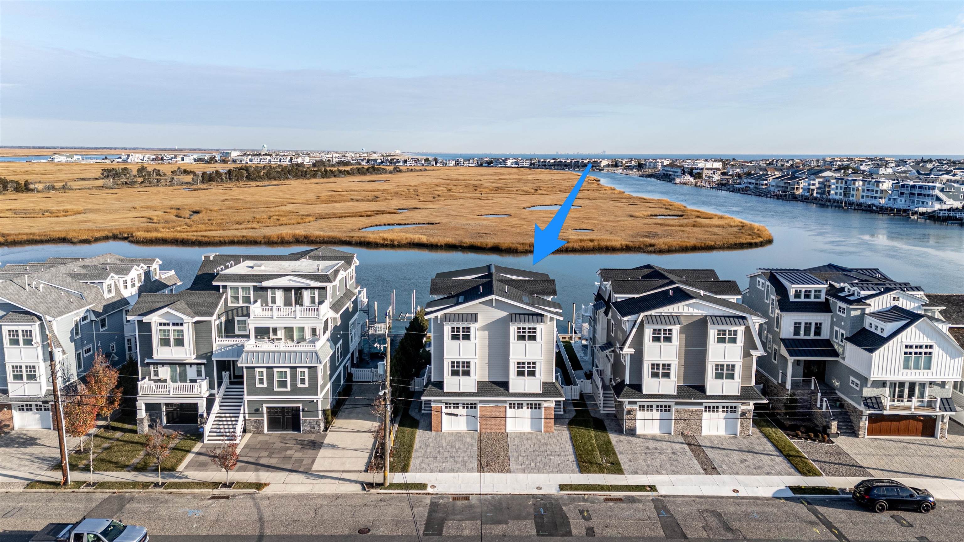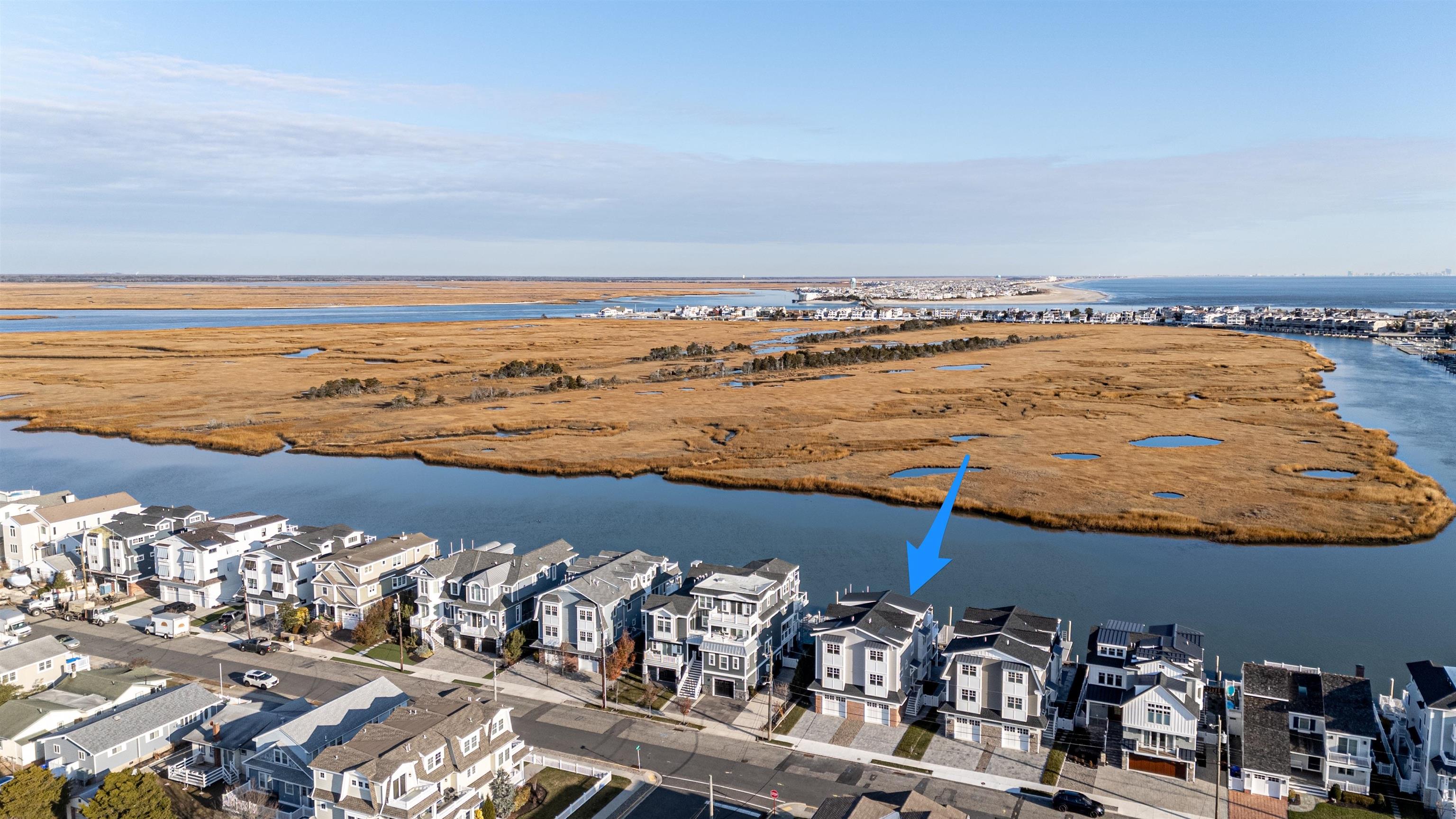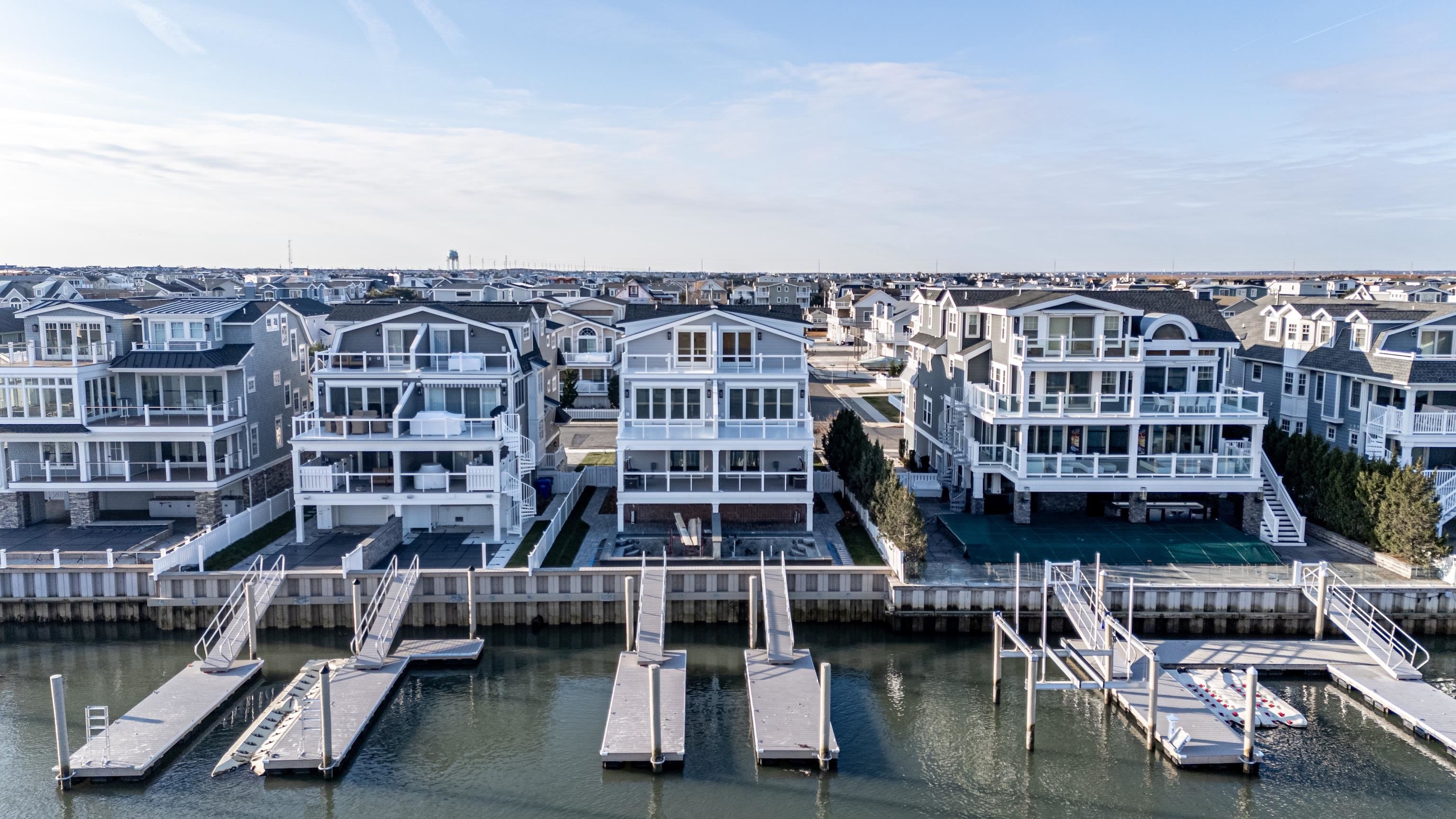 Brand new, BAYFRONT townhome, offering sensational living spaces, high end finishes, and easy access to both the center of town and to fast water. Expansive views of the bay and Cedar Island can be had from the grade level and all three stories of this massive townhome. The first floor offers two bedrooms and one full bathroom. The second floor is almost entirely dedicated to the entertaining space, anchored by a large kitchen with Thermador appliances, custom cabinetry, and a huge island that is perfect for entertaining. The dining area is a centered on a floor to ceiling wetbar with a beverage refrigerator, sink, and more custom cabinetry. The bayside living area is centered on a gas fireplace and offers a massive sliding door to maximize the views of the bay. Two large, street side bedrooms offer access to two full bathrooms, leaving the third floor entirely to the primary suite. This space has a luxurious primary bathroom, a walk-in closet, and slider access to a deck with the best views in the home. Out back, a heated, in-ground pool sits directly on the bay, with your boat slip just beyond the bulkhead. The raised foundation offers plenty of off-street parking and storage. An abundance of unique features makes this one the best bayfront opportunities on the market and the only new townhome currently available for sale.
